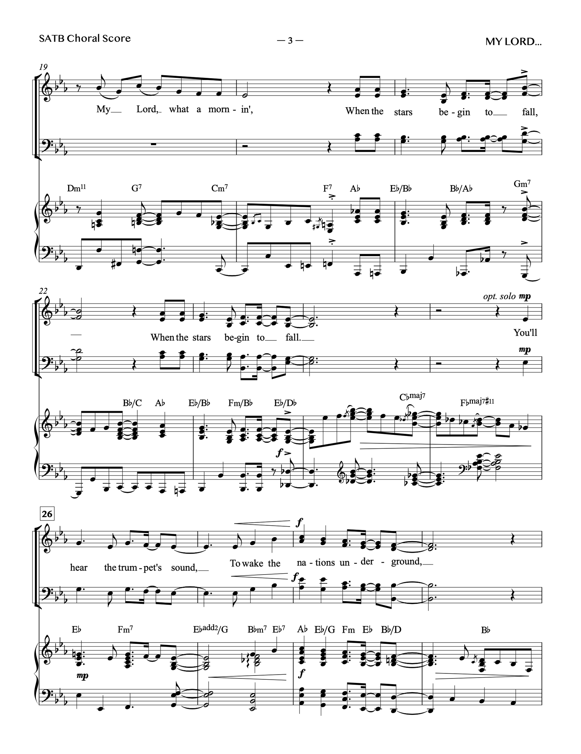 This vibrant new arrangement reimagines the classic spiritual with the drive and spirit of gospel music. Balancing deep tradition with fresh energy, it gives choirs a chance to showcase expressive power while engaging audiences in a way that’s both moving and electrifying. Instrumental parts available for bass and drums.